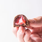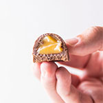 Chocolate ao leite com pasta de castanha de caju e de amendoim.