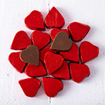 Gotas de chocolate ao leite cobertas com confeitos coloridos de açúcar.